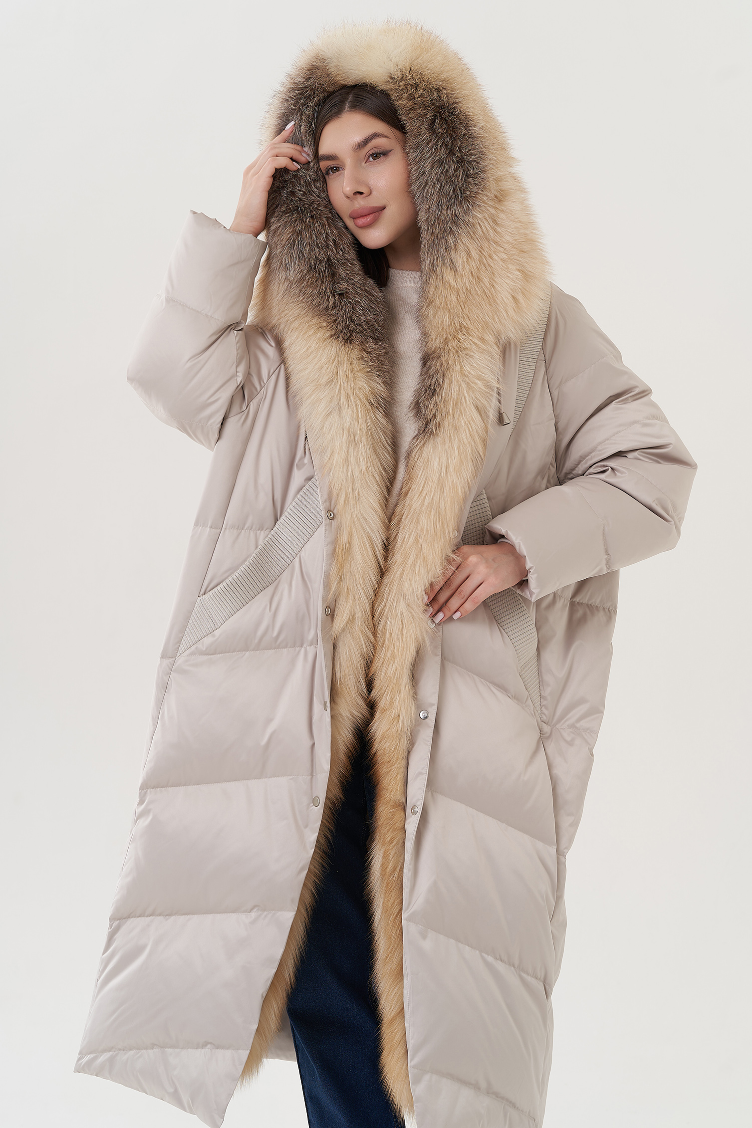 Крой воротника - капюшон, отделка лиса