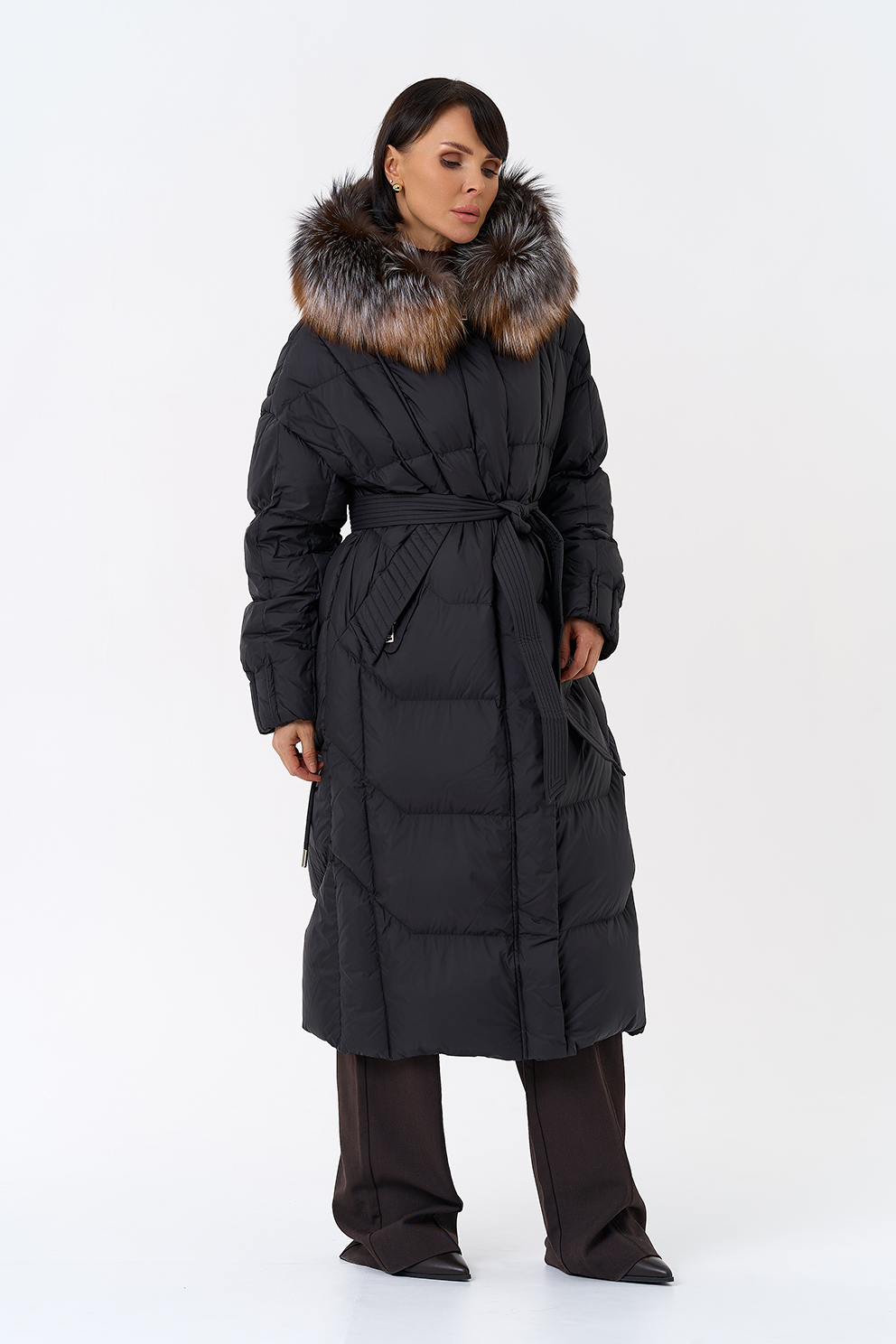 Крой воротника - капюшон, отделка блюфрост